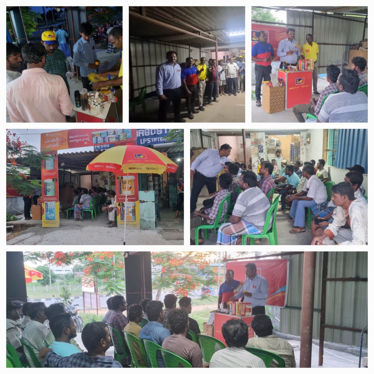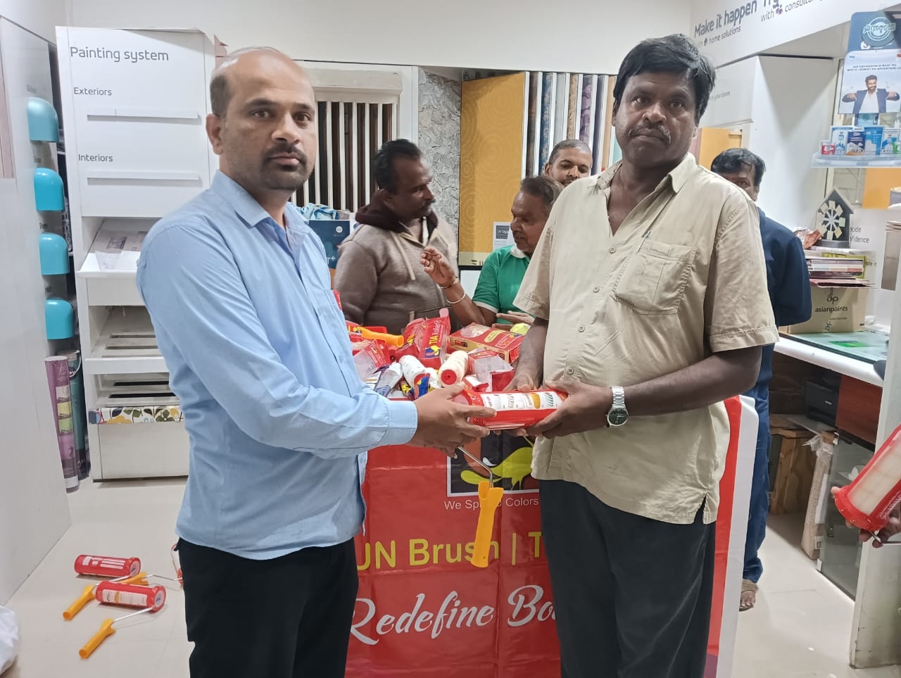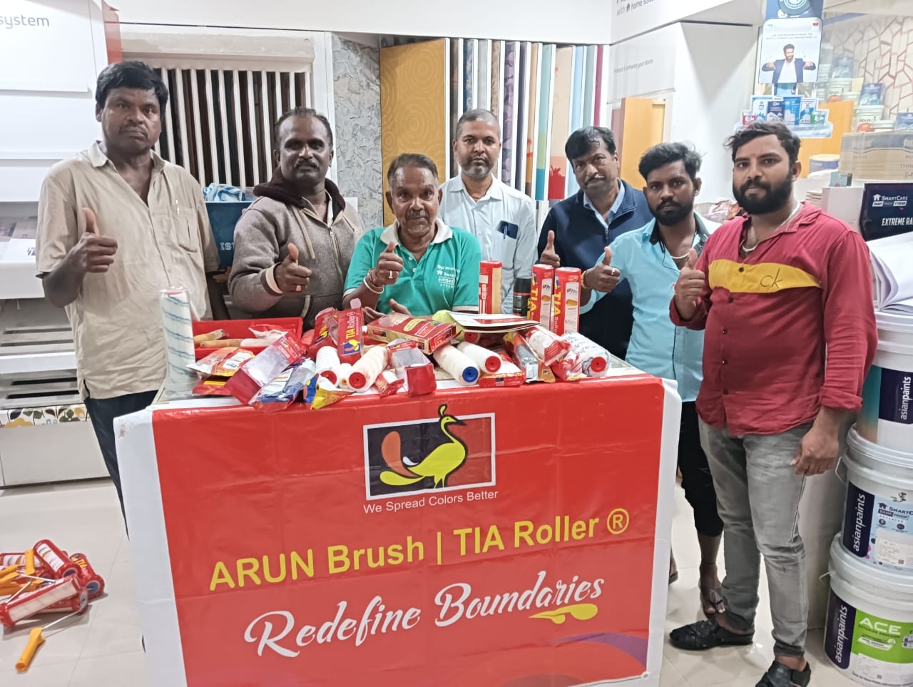 Read MoreIt sounds like there's a painters' meeting in Rajahmundry that includes demonstrations by TIA Roller and Arun Brush. This event seems to focus on showcasing painting techniques and tools. Painters are Provided with food and Complemented with Banians and Caps. (Meeting Date : 7.8.2024)