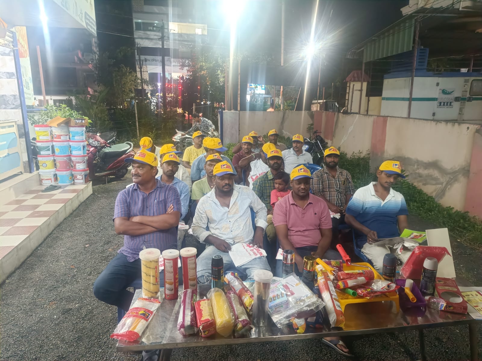 Read MorePainter meeting in (ASO Outlets)New Malka Paints & Prathap Paints & Sriman paints & Anapala paints & Eswar Paints Kadapa (AP) . A total of 46 painters participated. Provided them with food, Baniyan and cap. And explained our products and demonstrated the quality of our products. (Meeting Date :13.8.2024)